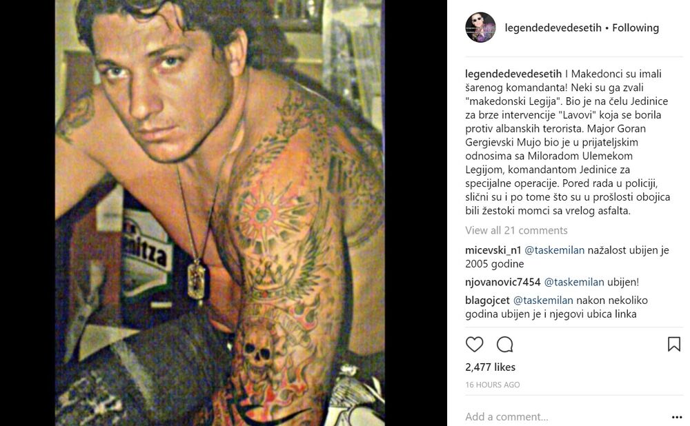 Мајорот Горан Гергиевски-Мујо бил во пријателски односи со Милорад Улемек-Легија, командант на Единицата за специјални операции на Србија. Освен заради работата во полиција, како што пишуваат медиумите во соседството, слични биле и по тоа што и двајцата биле жестоки момци од жешкиот асфалт.
