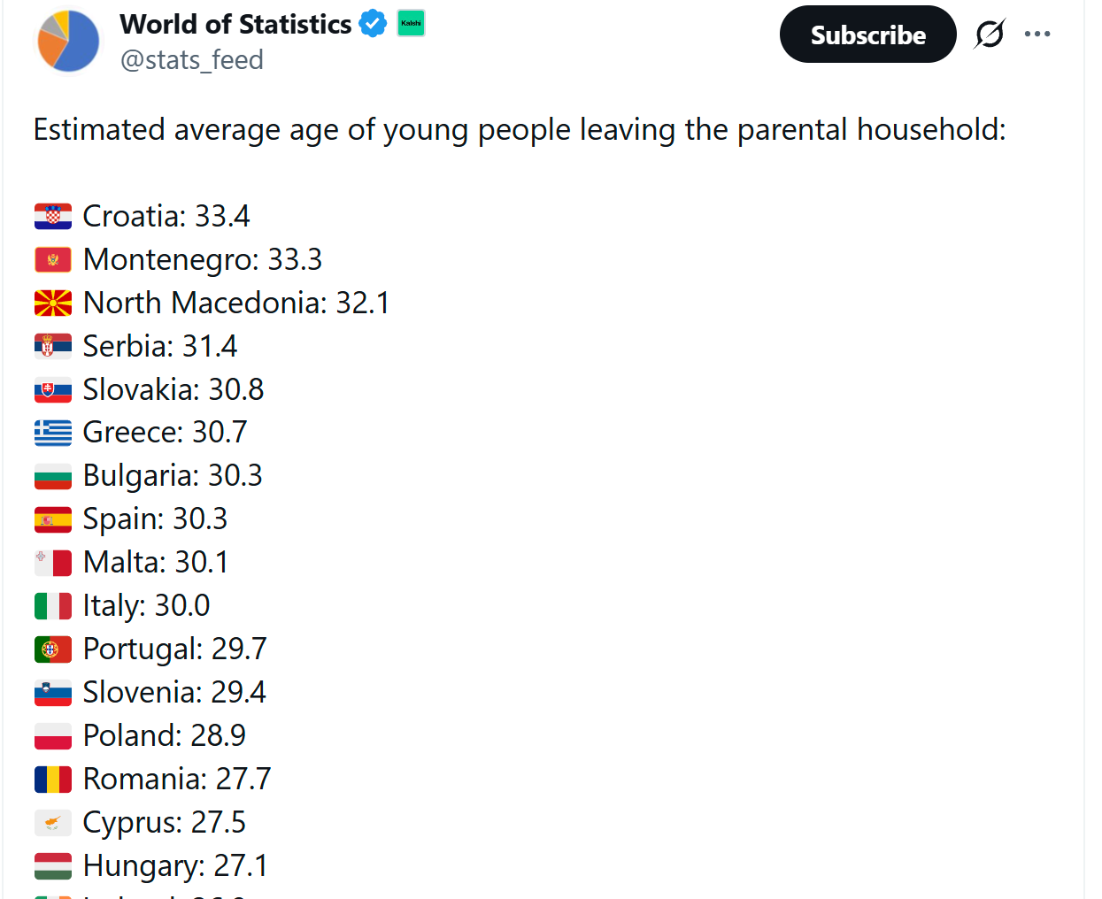 Што се однесува до статистиката, колку Словенци помлади од 30 години, живеат се уште со своите родители, работите стојат како во табелата: