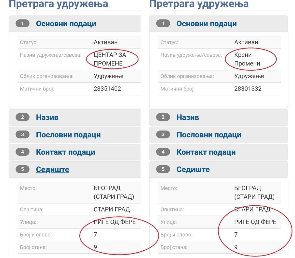Таа организација, сепак, не е баш фантомска - регистрирана е на адресата Рига од Фере 7 Белград, истата адреса каде што е регистрирано движењето „Крени - промени“ на Саво Манојловиќ!