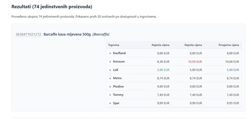 Неодамна, Владата на Република Хрватска воведе обврска за малопродажните синџири да објавуваат и ажурираат цени, кои мора да бидат достапни за јавноста во машински читлива форма. Овој веб-проект е создаден врз основа на тоа.