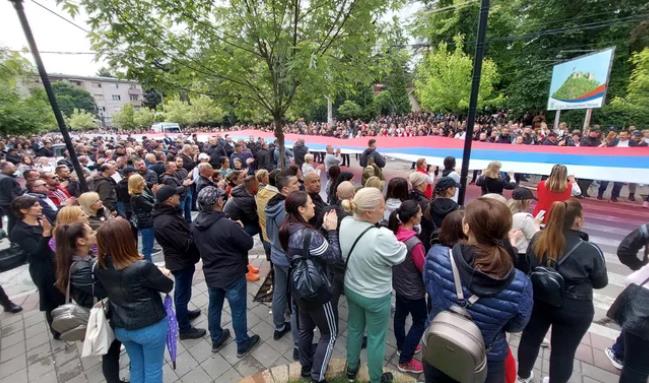Припадниците на КФОР утринава поставија жица на претходно поставените огради во близина на зградата на Општина Звечан, а таму се уште се присутни специјалните единици на полицијата на Косово.