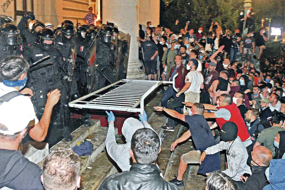 - Група луѓе кои не беа задоволни од најавеното заострување на мерките во време на епидемијата започнаа спонтано, но делот од немирите кои го предизвикаа насилството очигледно беше организиран, односно насилниците беа намерно ослободени за да предизвикаат хаос од поголем обем и да се пробијат во Собранието.