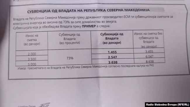 Во тој период, сметките за електрична енергија содржеле табела во која владата тврдела дека субвенционирала повеќе од 70 проценти, понекогаш и до 90 проценти, од потрошувачката на електрична енергија на граѓаните преку ЕСМ.