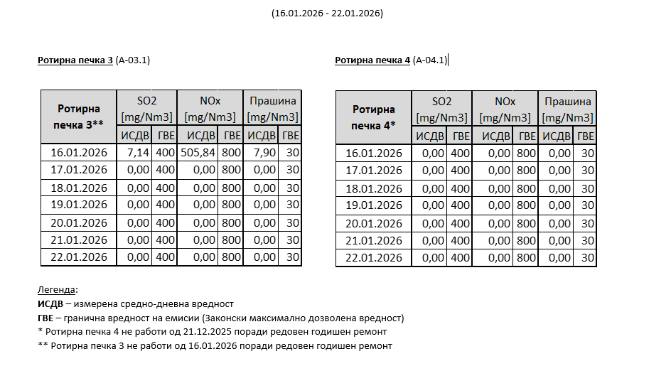 · Емисиите од работата на ТИТАН УСЈЕ постојано се под граничните вредности определени со Закон