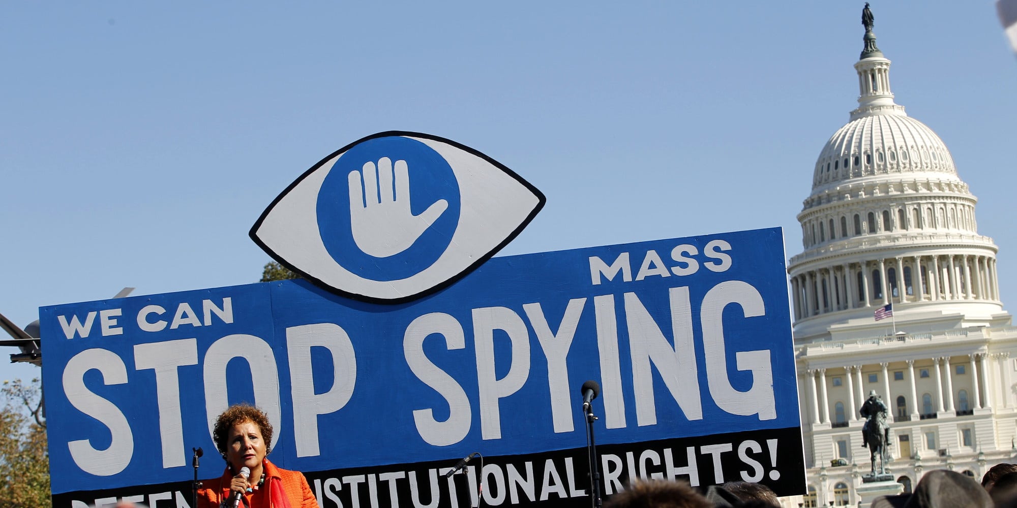 Laura Murphy, Director of the Washington Legislative Office of the American Civil Liberties Union (ACLU), speaks during a rally outside of the U.S. Capitol to demand that Congress investigate the NSA's mass surveillance programs on Saturday, Oct. 26, 2013, in Washington. ( AP Photo/Jose Luis Magana)[/caption]