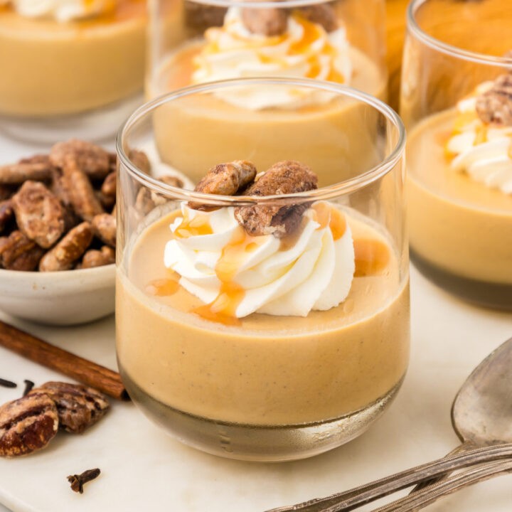 Измешајте го печеното пире од тиква со грчки јогурт, цимет и малку мед. Додадете рендана кора од портокал и ставете сè во чаши, со бисквити или трошки од овесна каша. Оставете да се излади пред сервирање и наросете со какао или јаткасти плодови.