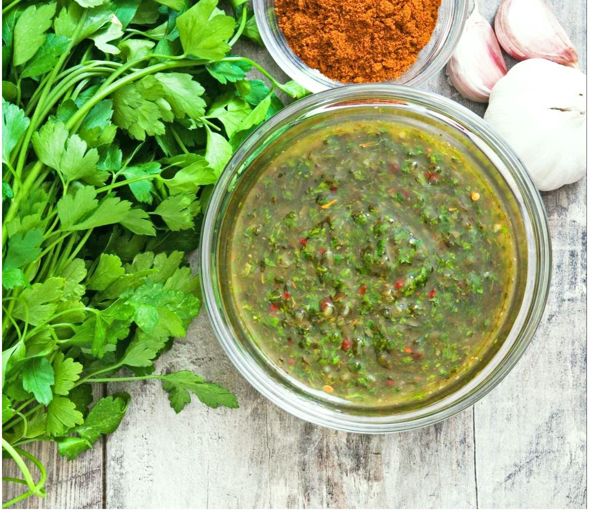 Овој живописен зелен сос со аргентинско потекло најчесто се подготвува од магдонос, оригано и други зачини, а некои верзии вклучуваат и коријандер. Најчесто се служи со стек, но сè почесто се користи и со риба, како лосос или ракчиња. Свежината на билките и лесната текстура го прават совршен додаток на многу јадења.