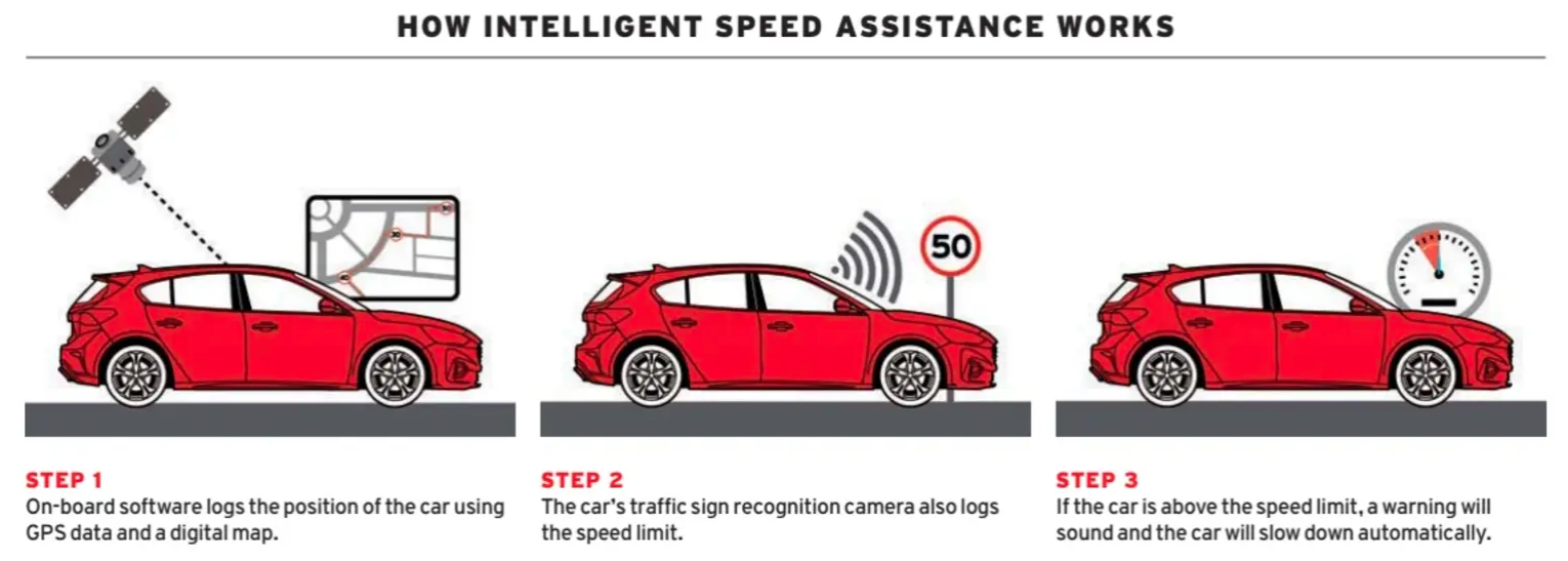 Овој систем користи GPS, мапи и препознавање на сообраќајни знаци за да ја одреди дозволената брзина и да спречи возилото да ја надмине. Принципот на работа е сличен на уредите што го блокираат стартувањето на автомобилот во присуство на алкохол.
