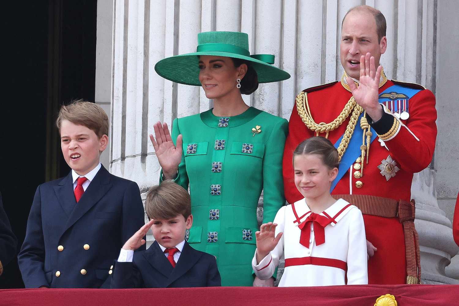 Принцезата Кејт потоа се одлучи за зелена боја како знак дека е подготвена за својата нова улога како полковник на Ирската гарда, а Шарлот беше облечена во бел фустан со црвени детали што одговараа на црвената вратоврска и темно сините јакни на нејзините браќа, кои генерално совршено се вклопуваа со боите на велшкото знаме.