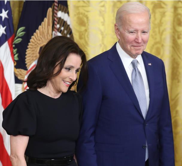 - Таа го прифаќа животниот апсурд со апсолутна духовитост и се справува со вистинските пресврти во животот со апсолутна благодат. Таа е мајка, таа е преживеана од рак, таа е пионер во комедијата, таа е американски оригинал, изјави Бајден за Луис-Драјфус, која многумина ја знаат и по улогата во серијата „Сајнфелд“.