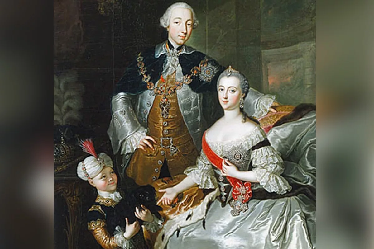 Во 1746 година, царицата Елисавета ја поканила принцезата Софи во Санкт Петербург да се омажи за нејзиниот наследник, надвојводата Петар. Се преобратила во Православната црква, го земала името Екатерина и почнала да учи руски – но сопругот и бил разочарување. Ситен, вошлив, со предрасуди, будалест и кукавица, надвојводата Петар не бил достоен како руски престолонаследник и како сопруг на Екатерина. И тој бил Германец, но иако Екатерина и излегла во пресрет на руската култура, тој ја мразел и се плашел од Русија.