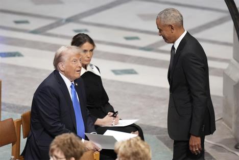 Двојката седеше до Барак Обама, а нивниот момент на интеракција брзо стана вирален на социјалните мрежи. Церемонијата се одржа во Националната катедрала во Вашингтон, Д.