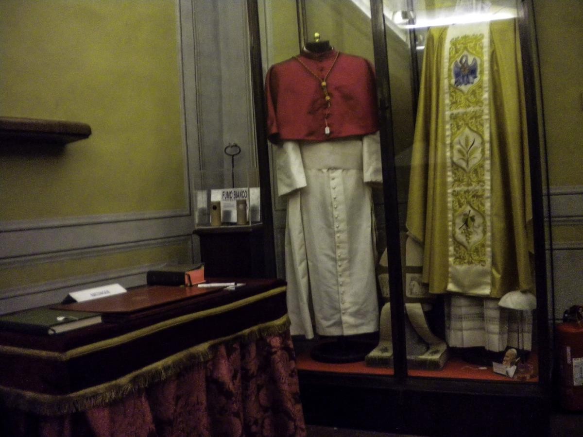 Тие содржат предмети поврзани со изборот на новиот папа: гласачката кутија, специјални свеќи што произведуваат обоен чад по секое гласање или познатата црвена софа позната како „Солзите на папата“, каде што традицијата вели дека новиот папа седи и плаче поради својата голема одговорност. Исто така, постојат интересни фотографии од личните работи на папата Разингер и други предмети.