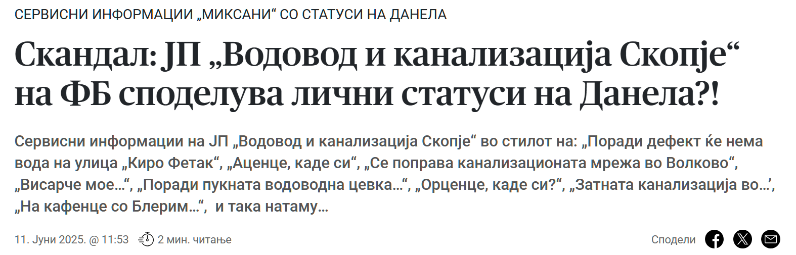 Но, дали проблемот е во тоа што има енормна потрошувачка на вода, или пак во тоа што водата мистериозно исчезнува низ водоводните цевки и незаконските приклучоци? Порталот Пари го побара одговорот во официјалните документи, а во нив има и што да се прочита – да читаш, па да ти се плаче!