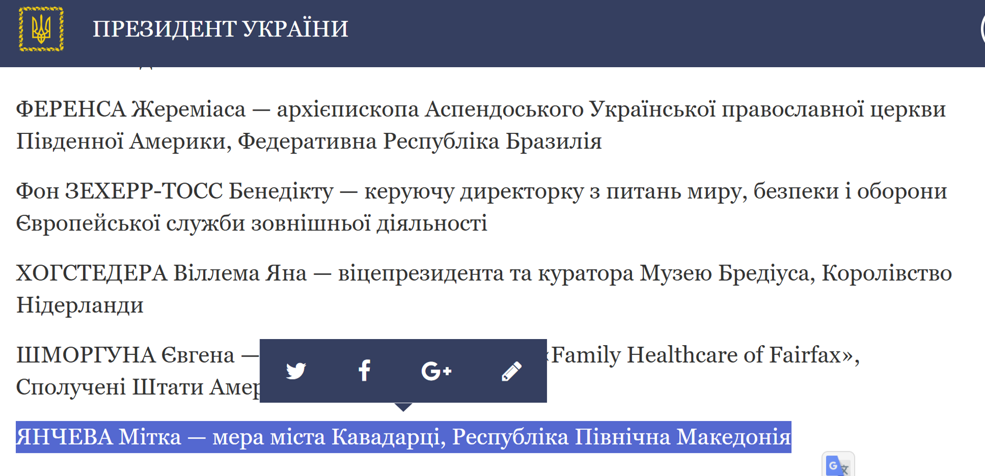 Украинскиот претседател ги доделува овие награди за значаен личен придонес во зајакнувањето на меѓудржавната соработка, поддршката на државниот суверенитет и територијалниот интегритет на Украина, добротворните активности и популаризацијата на украинската држава во светот.