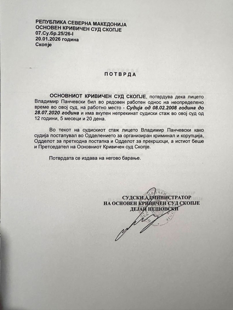 Оттука, тој стаж не може да се смета за непрекинат стаж од областа на кривичното право во смисла на законот – истакнала членот на Советот Маријана Илиеска. По што со оглед на наведеното, Советот заклучил дека кандидатот Владимир Панчевски не ги исполнува законските услови и не треба да биде ставен на листата на кандидати за кои ќе се гласа.”