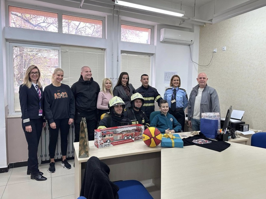 Ирина Камилоска, трогната од ситуацијата, решила да му приреди изненадување за паметење – директно во училиштето му донела гости со големи срца: пожарникари, пилот, кошаркари, планинари и жена полицаец.