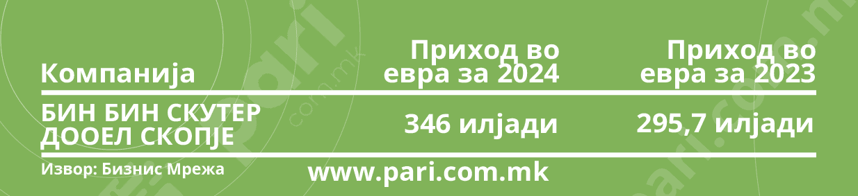 Финансиските податоци за 2024 година откриваат дека приходот на компанијата достигнал 346.000 евра, што претставува пораст од 17 насто во однос на претходната година, кога изнесувал 295.700 евра.