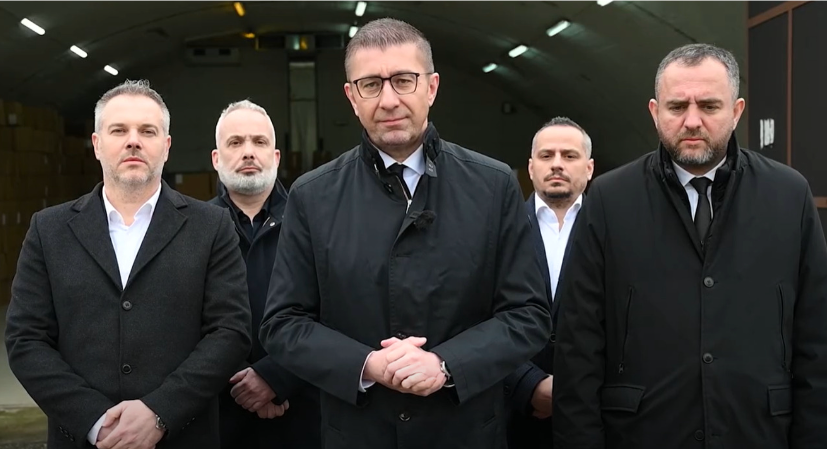 Министерот за внатрешни работи, Панче Тошковски, и премиерот, Христијан Мицкоски, дадоаизјава пред просториите во МВР во кои се сместени 40 тони запленета марихуана и најавија детална истрага за случајот
