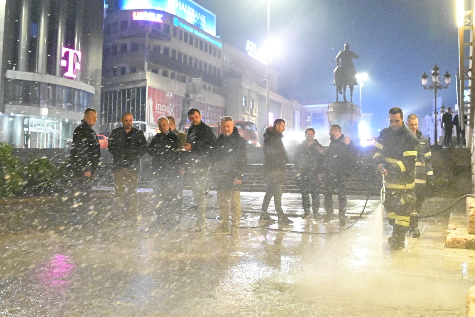 Скопје Орце Ѓорѓиевски синоќа на неговиот официјален фејсбук-профил објави нови фотографии од акцијата за чистење на централното подрачје на главниот град, плоштадот „Македонија“ и кејот на реката Вардар, што ја започна веднаш по преземањето на функцијата.