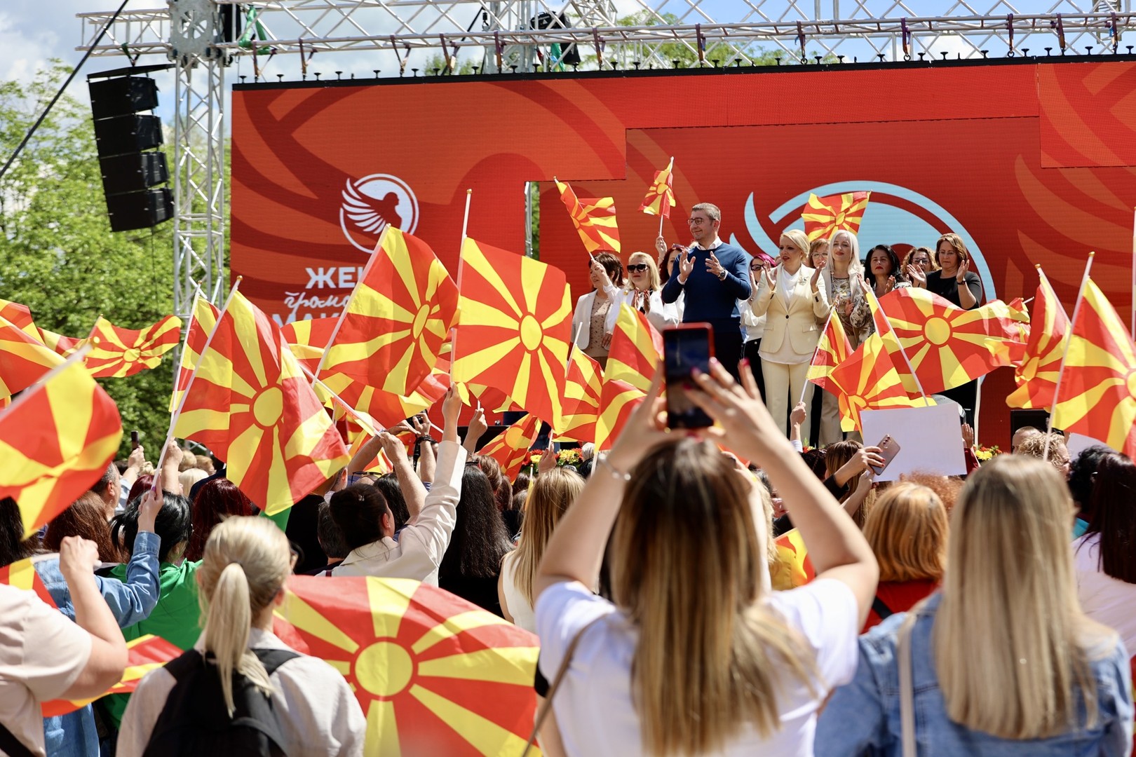 И во таа смисла за мене како човек, но и за сите други го носиме силното уважување и правиме длабок поклон на жените кои низ времињата биле моторот кој усмерувал, истрајувал низ сите бури и премрежја, неретко опишувани од многу пера, како хероини кои со мудрост, силна волја и нескршлив ентузијазам се вградувале низ сите процеси во нашата татковина. И денес кога ве гледам во колкав број и со каква енергија сме тука јасно е дека идејата е се уште жива, а мотивот поголем од било кога, и секоја една жена ја носи громогласната порака дека Македонија мора да успее. Македонија мора да успее. И тие победи мора да се случуваат секој ден, сантиметар по сантиметар, чекор по чекор, непрестајно да се бориме за нашата иднина.
