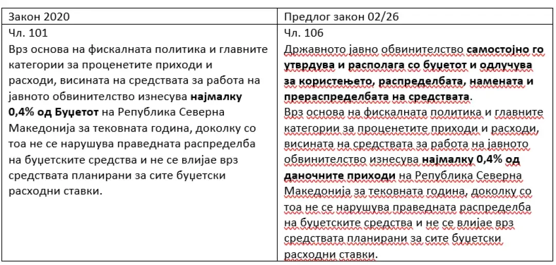 Наместо 0,4 отсто од целиот буџет, сега обвинителството ќе може да добие од државата 0,4 отсто од приходите. Сепак, откако ќе ги добие тие пари, во преговори со Министерството за финансии, јавниот обвинител самостојно ќе располага со нив. Делумно самостоен буџет ќе има и Основното обвинителство за гонење на организиран криминал и корупција.