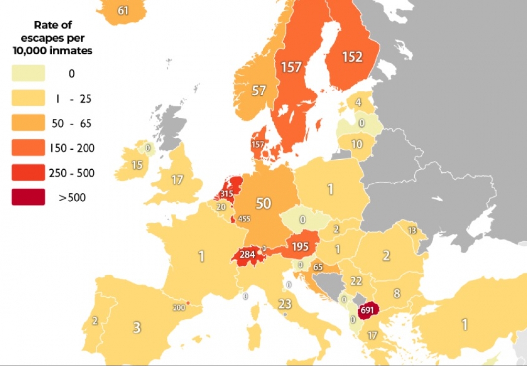 Нордиските земји и Холандија ги имаат едни од најмалите стапка на затвореници, но исто така и една од најголемите стапки на побегнати осудени лица.