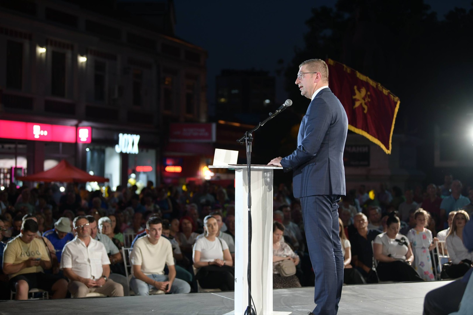 -Кога ќе погледнам во очите на луѓето кои секојдневно ги среќавам, знам дека морам да направам сè што можам за да имаат подобар живот. Така и ја гледам Македонија – со љубов и одговорност. За тебе, за твоето семејство, за иднината што ја градиме заедно, за надежите кои не смеат да се изневерат, рече Мицкоски.