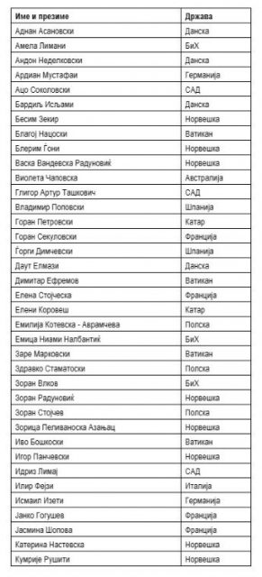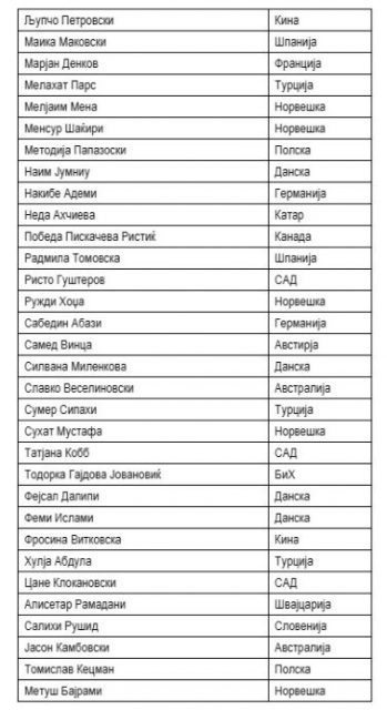 На листата се оперскиот пејач Благој Нацоски, кошаркарскиот тренер Заре Марковски, д-р Иво Бошковски од клиниката во Рим, д-р Димитар Ефремов научник од областа на хематологијата и ендрокринологот Горан Петровски од Катар. На листата се и бизнисменот Ристо Гуштеров и поранешниот министри за странски инвестиции во една од владите на Никола Груевски, Глигор Ташковиќ.