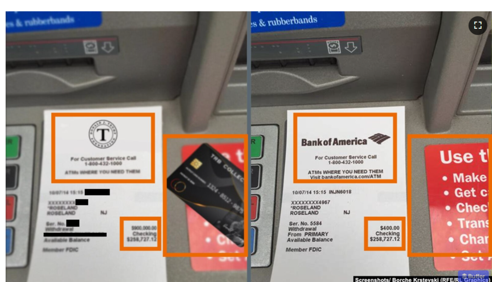Во бројни лажни огласи се споменува можност за подигање пари од банкомати. Bank of America, една од најголемите комерцијални банки во САД, е најчесто споменуваната банка каде наводно може да се подигнат пари.