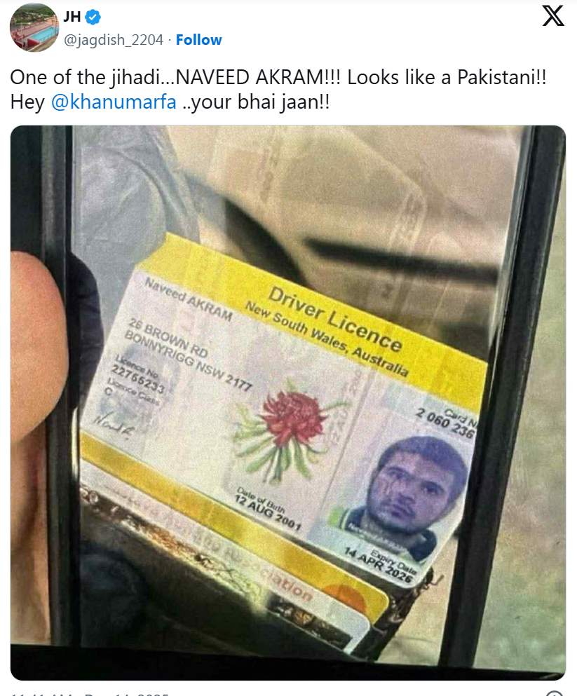 Еден од двајцата напаѓачи кои отворија оган на плажата Бонди во Сиднеј, убивајќи девет лица во целни напади, е идентификуван.