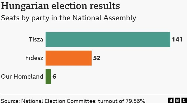 Првичните податоци предвидуваа дека пратениците на Тиса ќе освојат 138 места, што веќе го надминува двотретинското мнозинство што ѝ беше потребно на Унгарија за да ги поништи уставните одлуки на Орбан и да се справи со корупцијата. Во последното пребројување, Тиса освои 141 место.