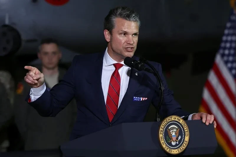 „Смрт и уништување од небото цел ден“, се фалеше Пит Хегсет, облечен во црвена, бела и сина вратоврска, пред новинарите во Пентагон во близина на Вашингтон.