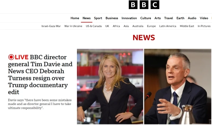 Генералниот директор на Би-Би-Си, Тим Дејви, и извршната директорка на вестите, Дебора Тернес, поднесоа оставки по критиките дека документарецот на Би-Би-Си „Панорама“ ги довел во заблуда гледачите со монтажа на говор на американскиот претседател Доналд Трамп.