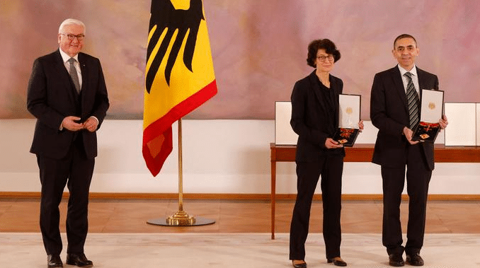Германскиот претседател, Франк-Валтер Штајнмаер, денес им додели ордени за заслуги на сопствениците на компанијата „Бионтек“, Угур Шахин и Озлем Туречи. На свеченоста тој повика на поголема слога и одлучност во борбата против пандемијата, а Шахин предупреди дека борбата против мутираните видови на вирусот може да биде уште поголем предизвик.