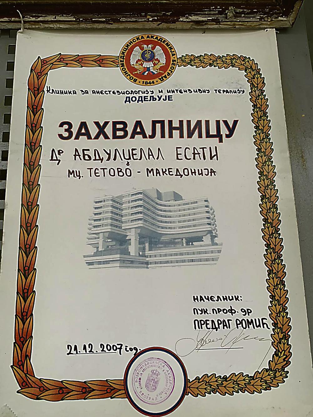 Д-р Абулџелал Есати (67) Албанец од Теарце во близина на Тетово, попознат како д-р Џеки изјавил за српски Курир дека се чувтсвува должен кон Србија и сака да се оддолжи така што, како волонтер, ќе помага во некоја од српските болници против Ковид 19.