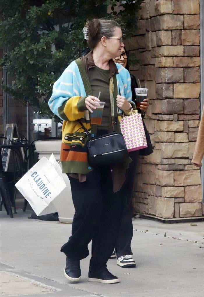 За оваа пригода, таа носеше лежерна комбинација - црна тренерка, маица и шарена наметка со интересни детали. Таа беше видливо расположена, а многумина сега прашуваат - дали е подготвена да се врати на глумата?