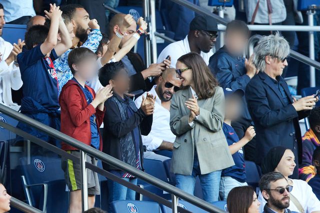 Го гледаше фудбалскиот натпревар помеѓу ПСЖ и Клермон Фут 63. Портман изгледаше како да е расположена и ја задржа насмевката на лицето иако нејзиниот сопруг не беше покрај неа. Таа се појави во сива јакна и бела кошула и носеше темни очила и црвен кармин.