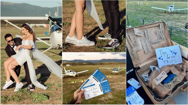 Марија и Борис Цветановски, музичарот познат како Ris Flower, од Скопје направија уникатна тематска свадба на спортскиот аеродром Стенковец со покани во вид на авионски билети.
