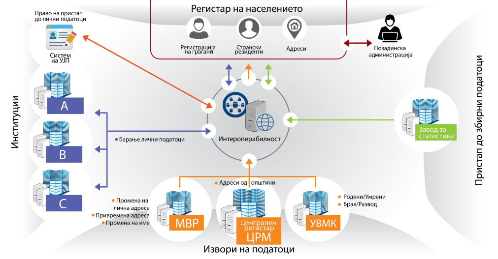 Законот за Централниот регистар на население го уредува водењето на поединечните бази на податоци, како и пристапот и обработката на податоците содржани во регистарот од страна на другите субјекти. Овие податоци се однесуваат на личните податоци на граѓаните на Република Северна Македонија, како и на податоците за странски државјани со регулиран престој подолг од една година.
