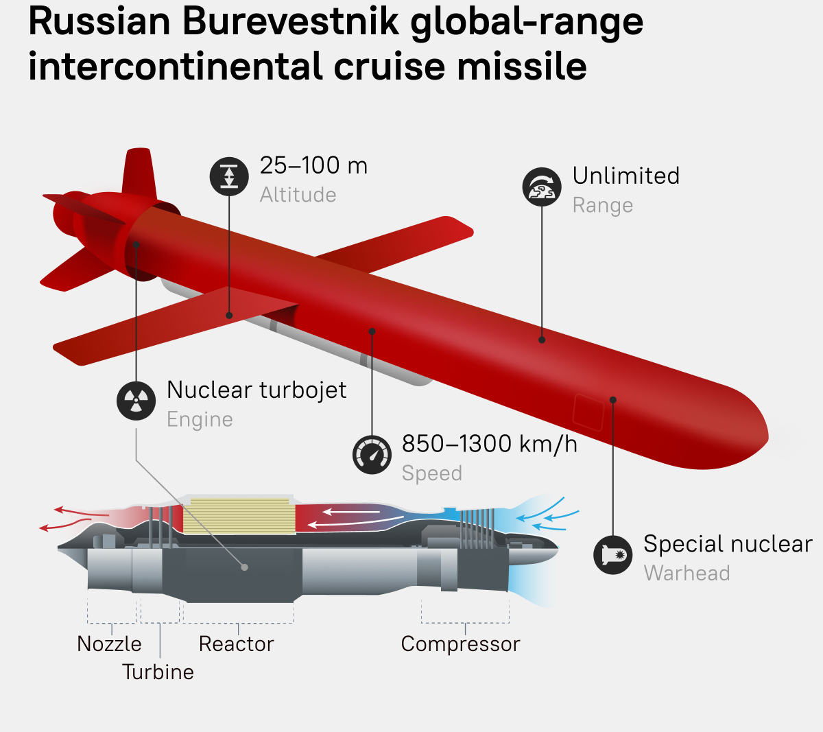 Ова е анализа само од американската страна, од нивни сознанија, но постојат десетици тајни оружја на руската страна за која Вашингтон нема информации иако знае дека Русија ја користи воената ситуација со Украина за крајно забрзано модернизирање на оружјето, меѓу кое и нуклеатрното како тукушто активираните подморници на нуклеарен погон и две серии на ракекти со нуклеарно полнење какви што се Циркон и најновата Буревесник која лета со нуклераен погон и има практично домест со неограничен лет високо над земјата, далеку од радарите, додека се донесе одлука за спуштање кон целта.