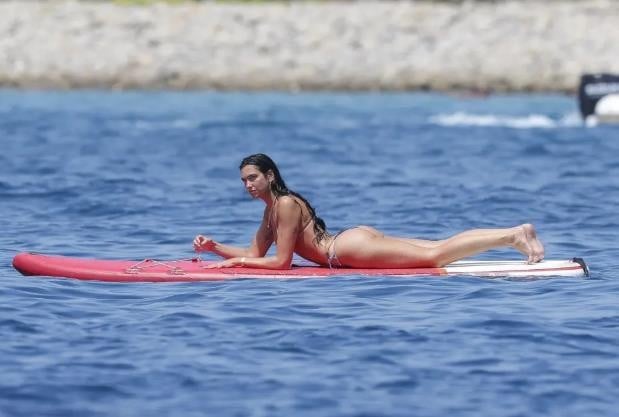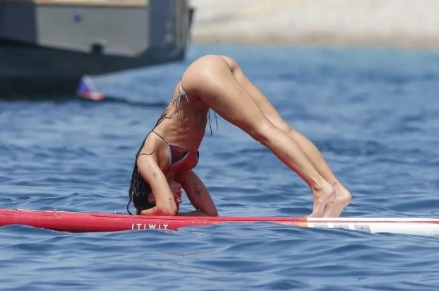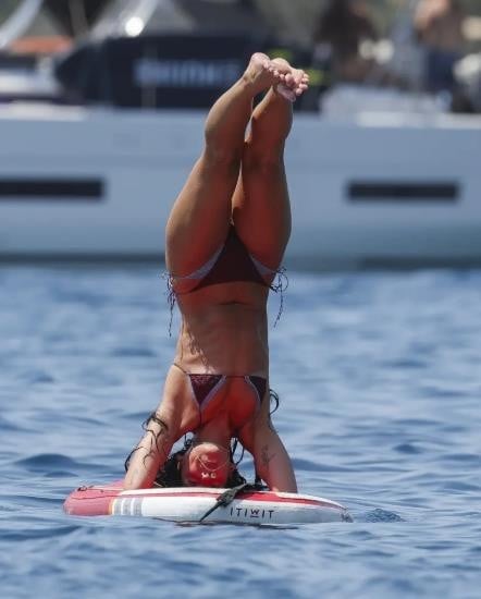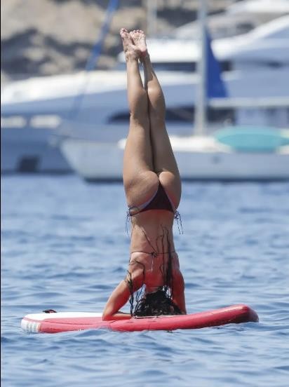 Атрактивната пејачка овој пат, папараците ја снимија како прави јога и како балансира на глава на суп кој плови по вода.