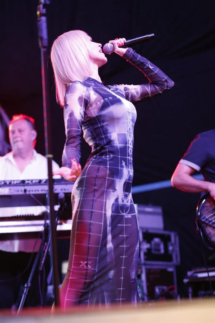 Русоокосата пејачка на бината се појави во проѕирен фостан кој ја истакна нејзината совршена става.